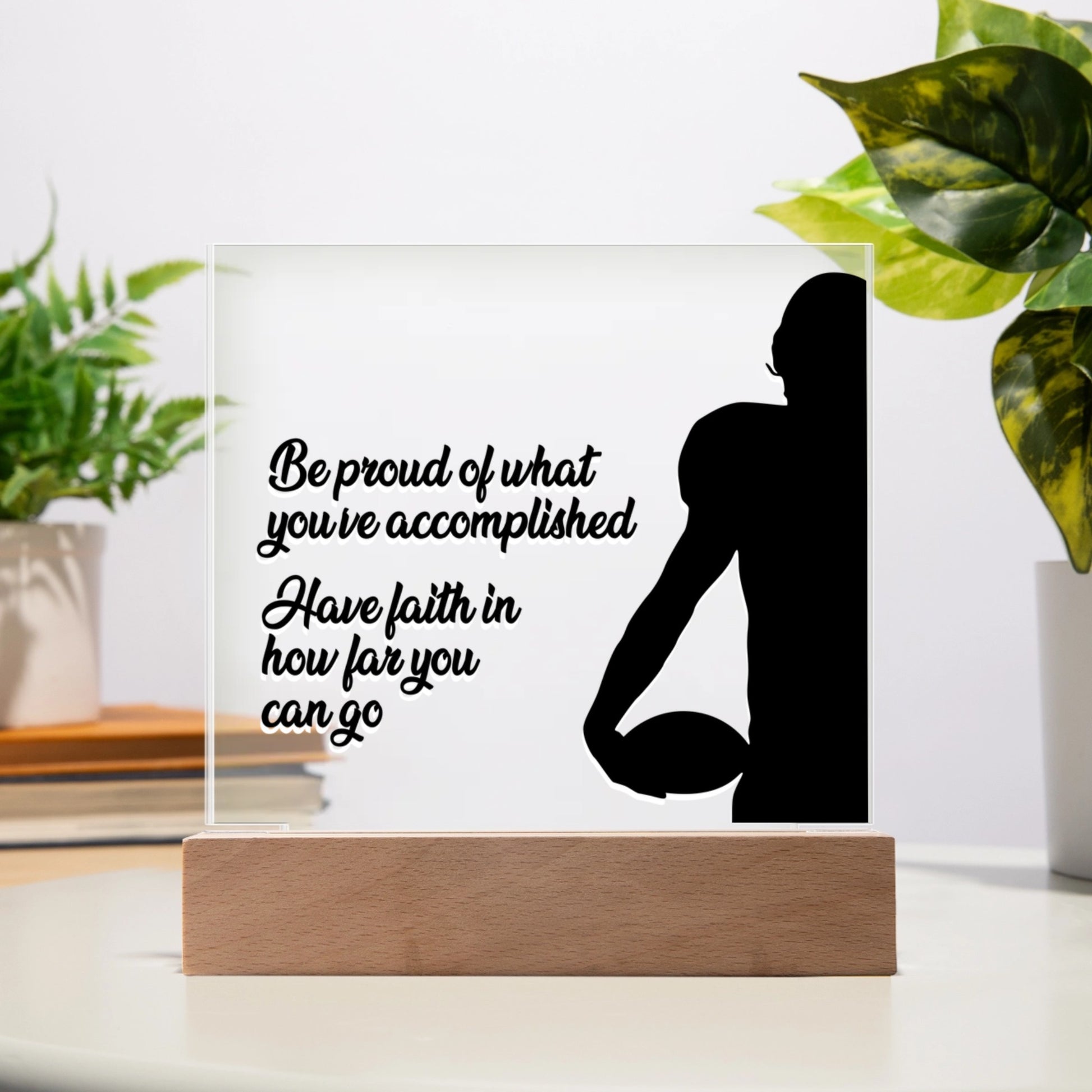 Create a memorable welcome to any room with our Printed Square Acrylic Plaque. This beautiful sign is handcrafted using premium acrylic and a vibrantly printed design. Display your beautiful plaque in your own home or give it as a gift to make a statement. This would make an ideal gift for your beloved partner, family members, or dear friends on special occasions like anniversaries, birthdays, or any event where you want to express your love and appreciation in an unforgettable way. Your plaque will be crafted from premium acrylic with a professionally printed design for a polished look. It comes with a stylish wooden LED base, and you can choose between a USB plug-in option OR a cordless battery-operated option (requires 2 AAA batteries, not included). Both LED bases feature 7 vibrant colors, allowing the user to customize the lighting with various color changes and dynamic cycles. Product specifications: Premium acrylic Size: 7" (17.8cm) height x 5.9" (149.86mm) width Acrylic Depth: 0.1" (5mm) Sharp, detailed printed design Corded LED Base uses an attached controller to customize light options Battery Powered LED Base uses a single button to customize light options with an On / Off switch located on the bottom of base Each order is lovingly packaged and ready to be cherished for a lifetime!